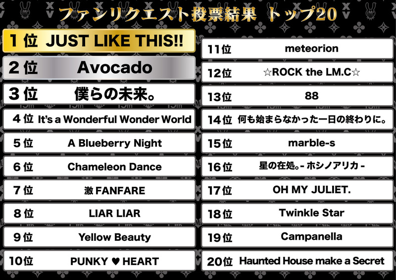LM.C's 15th Anniversary Project: the No. 1 Fan Requested Song! From all the songs LM.C has produced since their debut, the song that received the most votes from fans has been decided! The winning song will have a newly produced music video which will be included in the music video collection.
